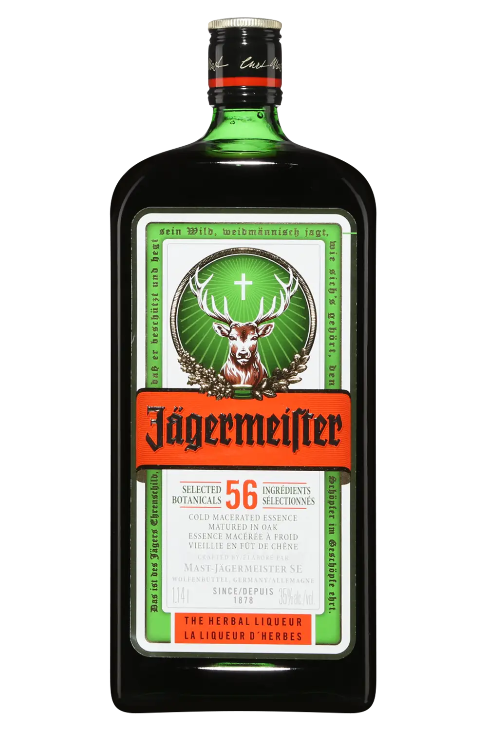Le Jägermeister est une liqueur allemande iconique, connue dans le monde entier pour son goût unique et sa recette secrète composée de 56 herbes, épices et racines. Avec ses arômes complexes de réglisse, d’agrumes, de gingembre et de caramel, il offre une expérience riche et équilibrée. Que ce soit pour déguster en shot bien frais, dans un cocktail ou même en accompagnement d’une bière (en « Jägerbomb »), le Jägermeister est un incontournable des bars et des soirées entre amis.