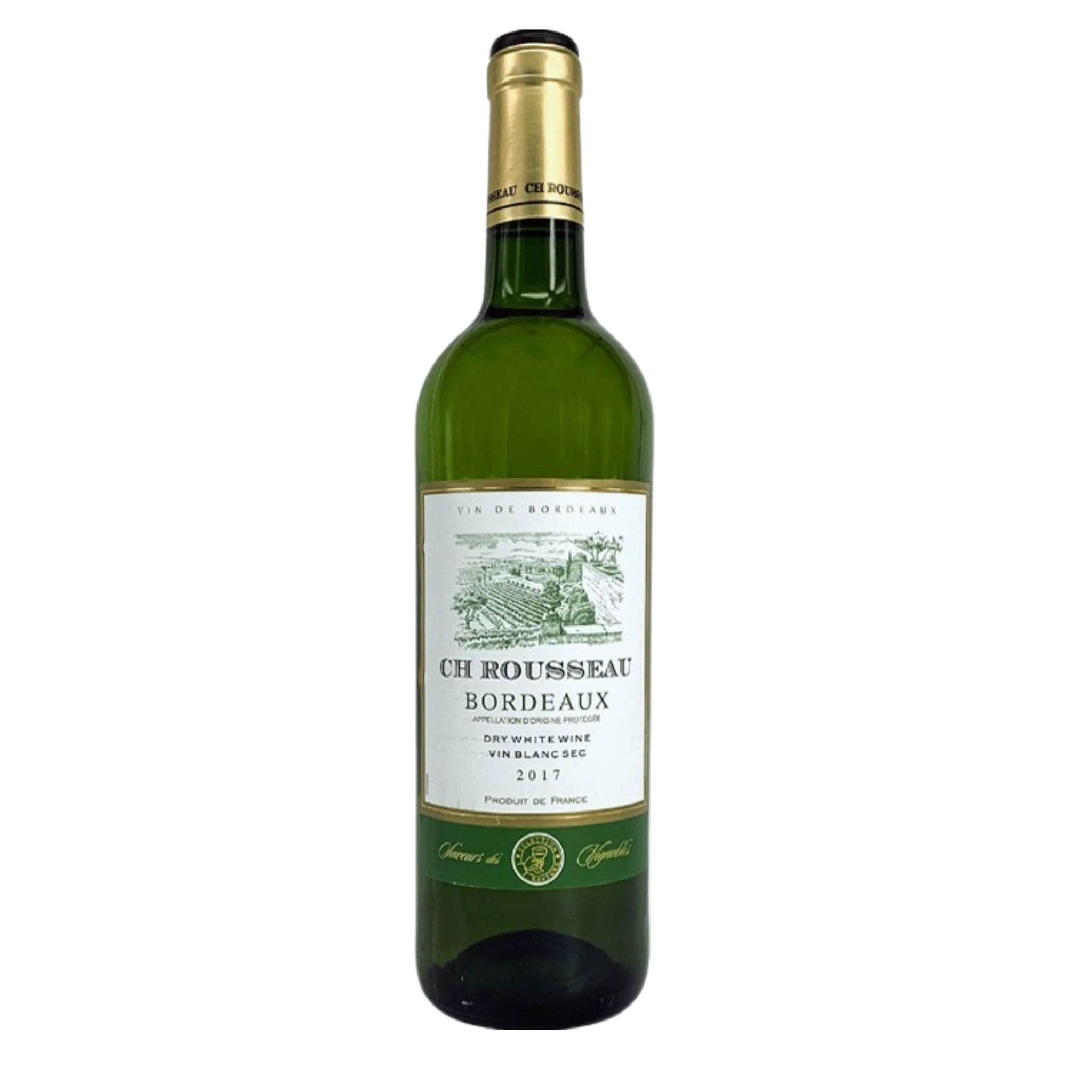 Le CH. ROUSSEAU AOC Bordeaux blanc est un vin blanc sec produit dans la région de Bordeaux, en France. Il est caractérisé par sa fraîcheur, sa vivacité et ses arômes fruités d’agrumes et de fruits blancs. Il est généralement équilibré en acidité et accompagne bien les fruits de mer, les poissons grillés et les plats légers.